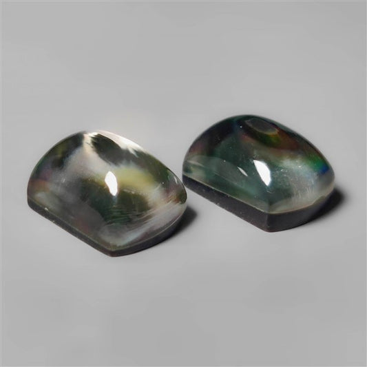 Himalayan Crystal With Tahitian Black Mother Of Pearl Doublets Pair
