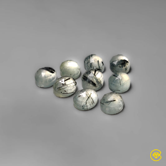 8X6 mm Rose Cut Black Tourmalinated Prehnites Calibrated Lot