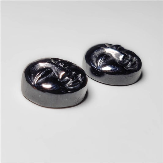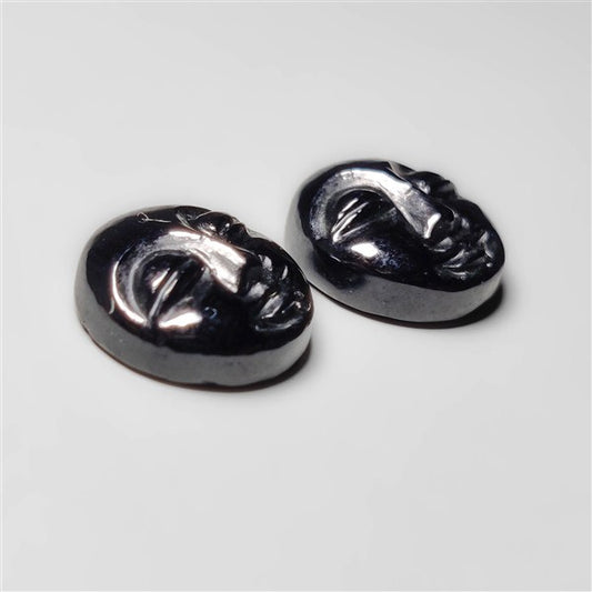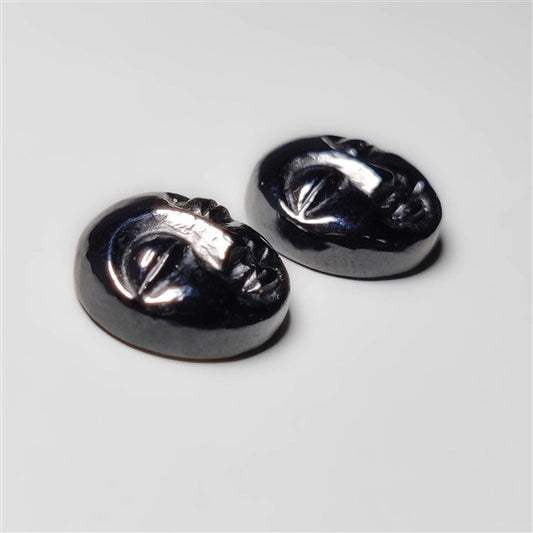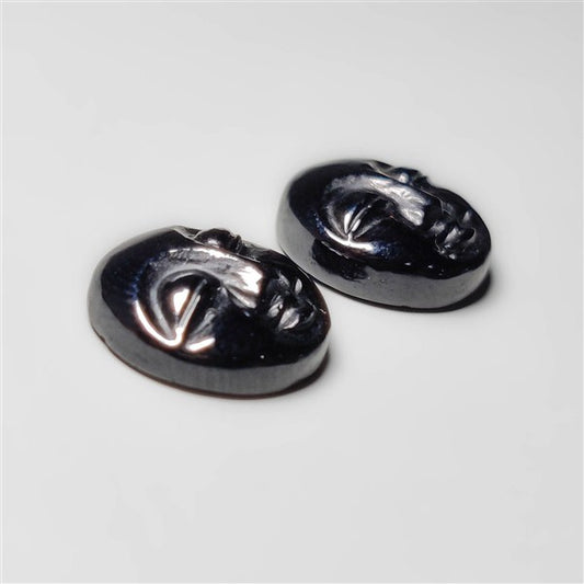 Black Onyx Moonface Carvings Pair