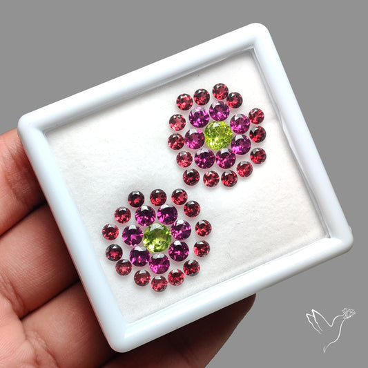 Faceted Rhodolite and Mozambique Garnets, Peridot Set