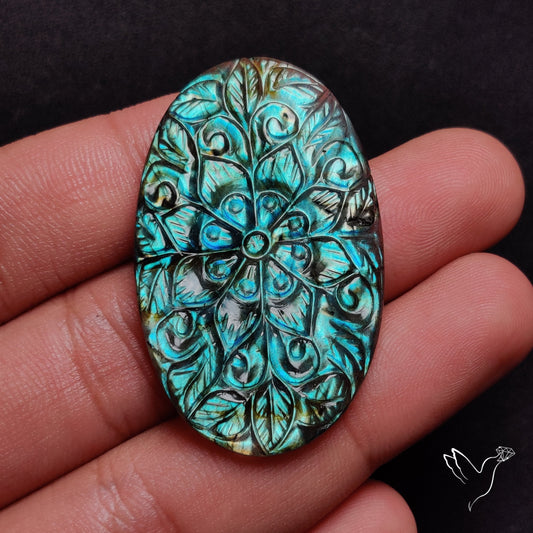 Labradorite Mughal Carving Handcarved