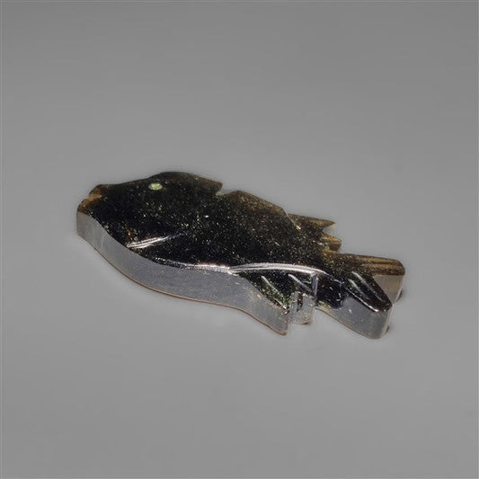 Silversheen Obsidian Goldfish Carving