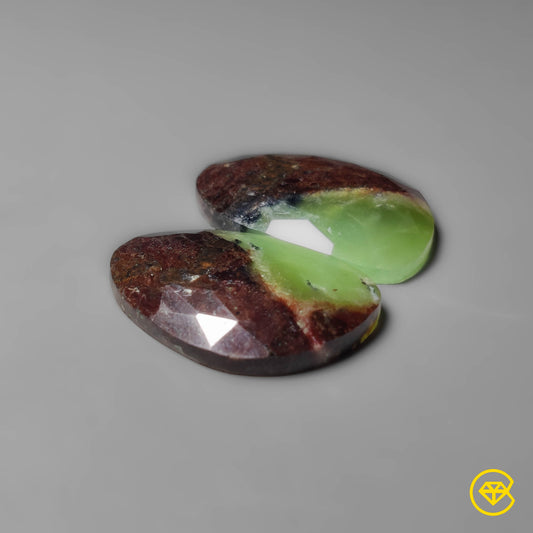 Rose Cut Boulder Chrysoprase Pair