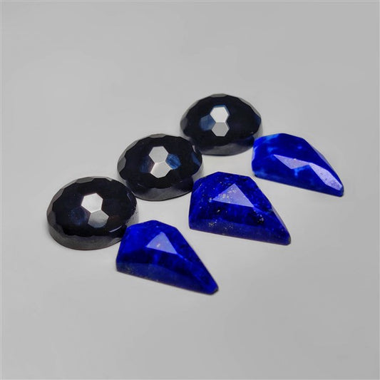 Honeycomb Cut Black Onyx And Rose Cut Lapis Lazuli Set