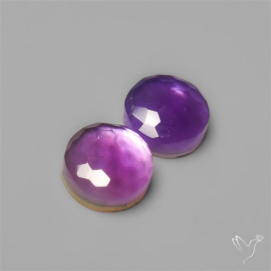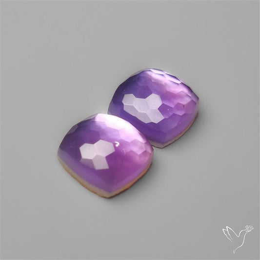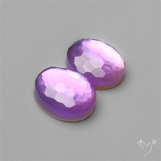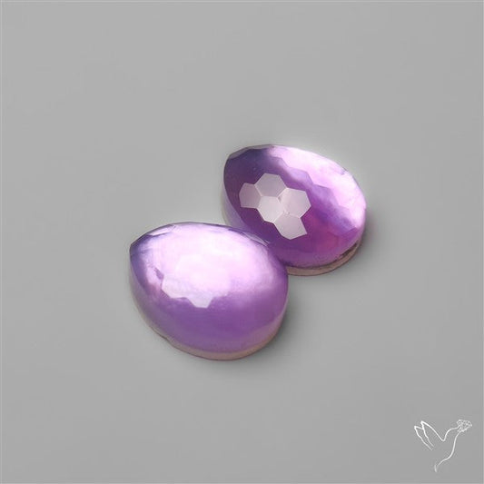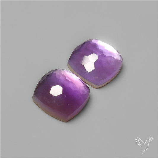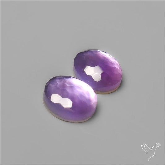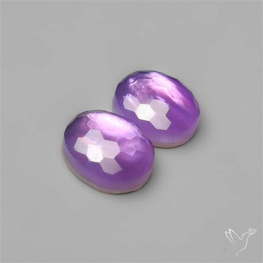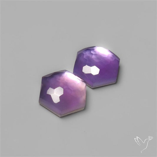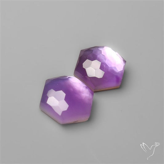 Honeycomb Cut Amethyst With Mother Of Pearl Doublets Pair