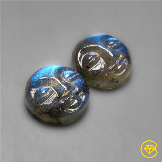 Blue Labradorite Moonface Carvings Pair