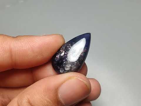 This Bloodshot Iolite Sunstone Cabochon with Confetti N37300 from the India is ready to be delivered as a Natural and untreated stone. The stone is available in the size 27X15X7 mm and weighs 19 Carat. The color of the stone can be expected to be the same as shown. In reference to the picture the number of stone pieces ready to be bought are: 1pc.