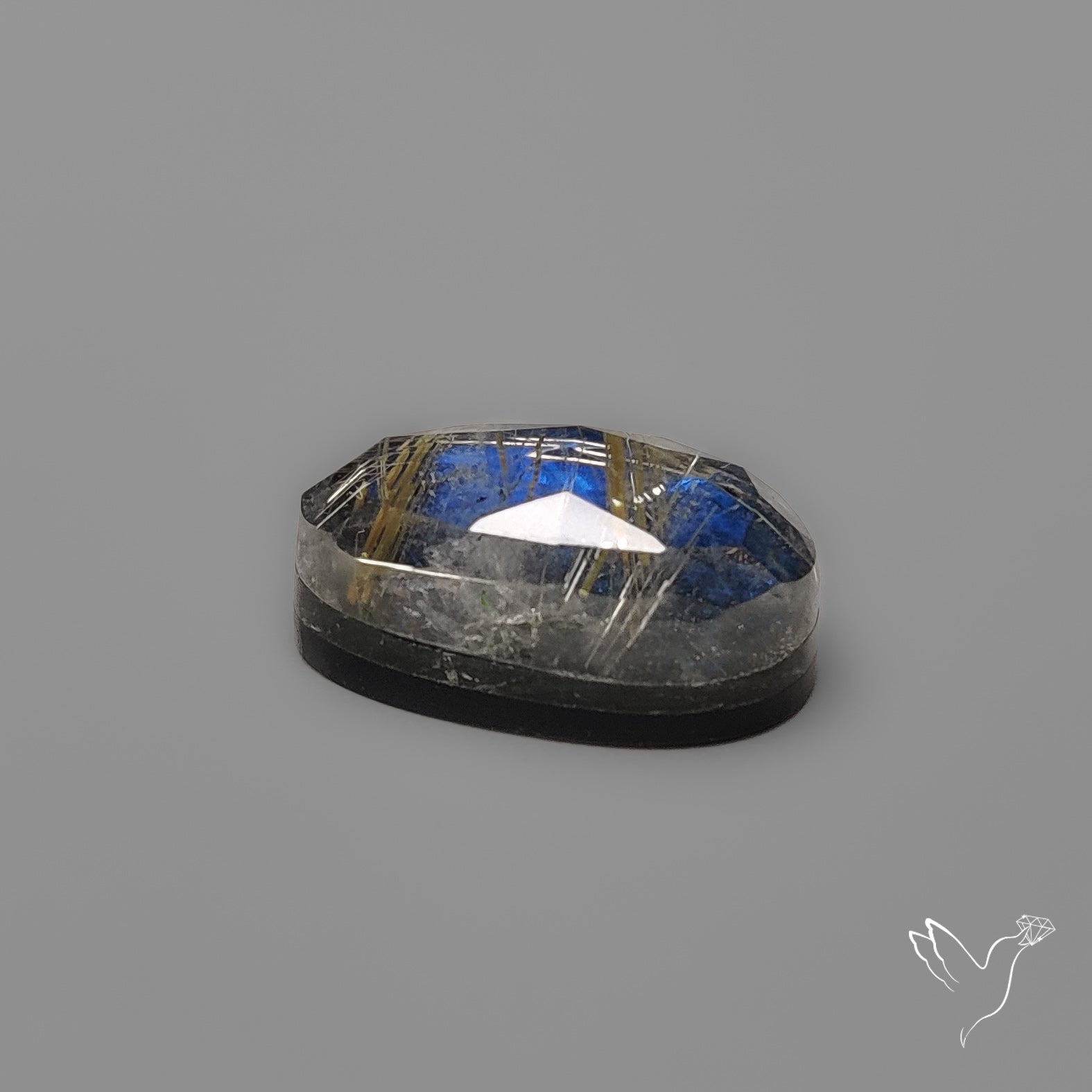 Rose Cut Golden Rutilated Quartz With Blue Labradorite Doublet