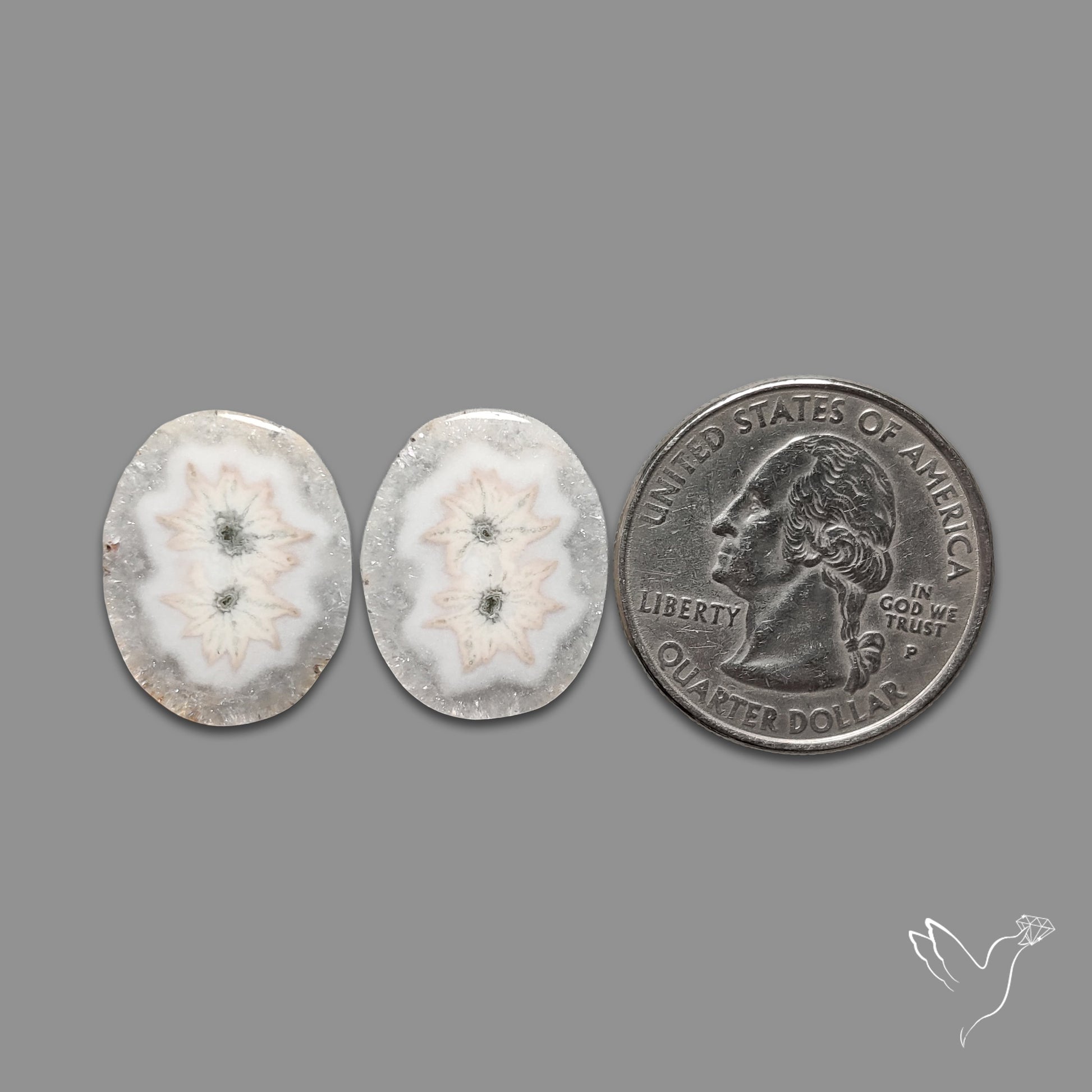 This Solar Quartz Stalactite Slice Pair N46282 from the Africa is ready to be delivered as a Natural stone. The stone is available in the size 19X15X4 mm and weighs 19.85 Carat. The color of the stone can be expected to be the same as shown. In reference to the picture the number of stone pieces ready to be bought are: 1pc.