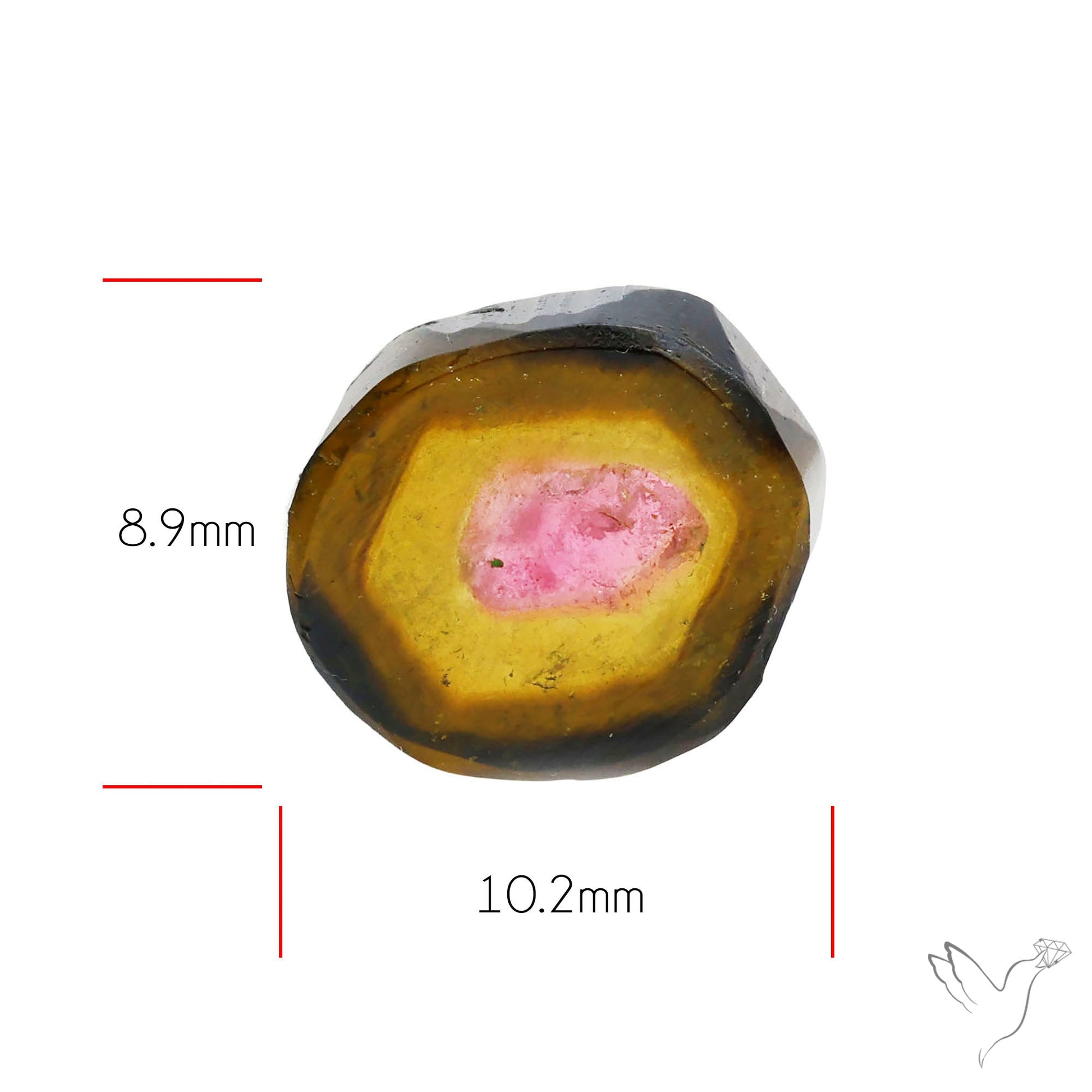 This Watermelon Tourmaline Slice Rare Perfect Green Border N45399 from the India is ready to be delivered as a Natural stone. The stone is available in the size 8.9X10.2X3.3 mm and weighs 3.65 Carat. The color of the stone can be expected to be the same as shown. In reference to the picture the number of stone pieces ready to be bought are: 1pc.
