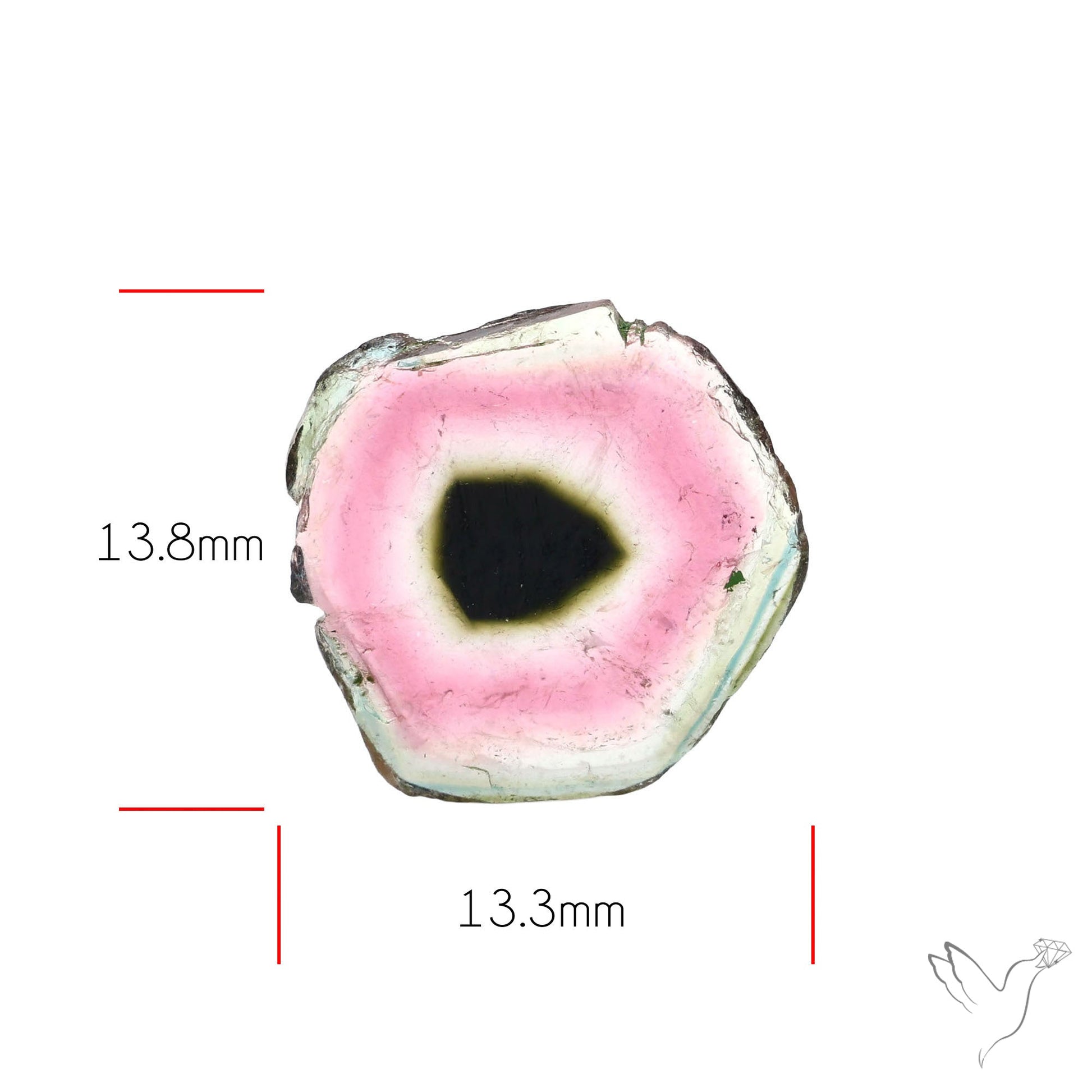 This Watermelon Tourmaline Slice Rare Perfect Green Border N45426 from the India is ready to be delivered as a Natural stone. The stone is available in the size 13.8X13.3X2.1 mm and weighs 3.85 Carat. The color of the stone can be expected to be the same as shown. In reference to the picture the number of stone pieces ready to be bought are: 1pc.